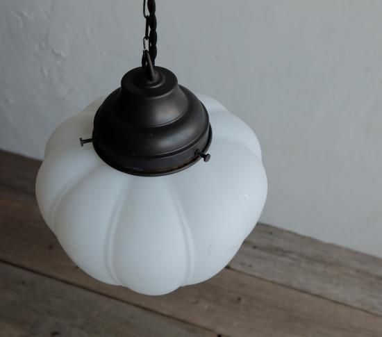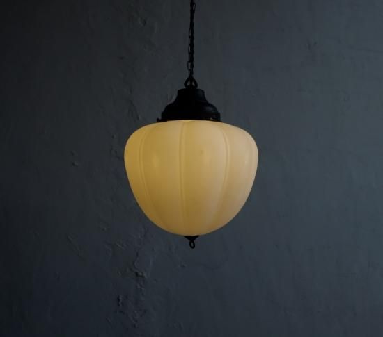 大正期のレトロなデザインの照明です。しっとりとした乳白のすりガラスとかぼちゃ型の曲線がやさしい佇まい。