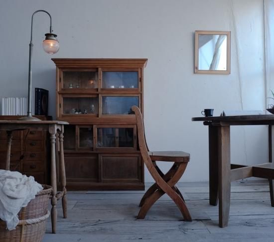 三段のガラス戸と、最下段の板戸に分かれています。ディスプレイしたいものと、