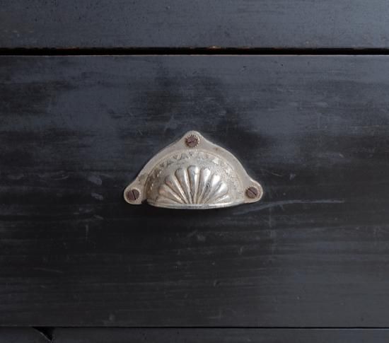 引き出しも2杯。黒の塗装に対してシルバーの取手が映えています。