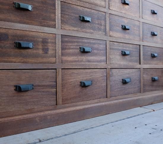 二十四杯の引き出しの並ぶ飾り棚。