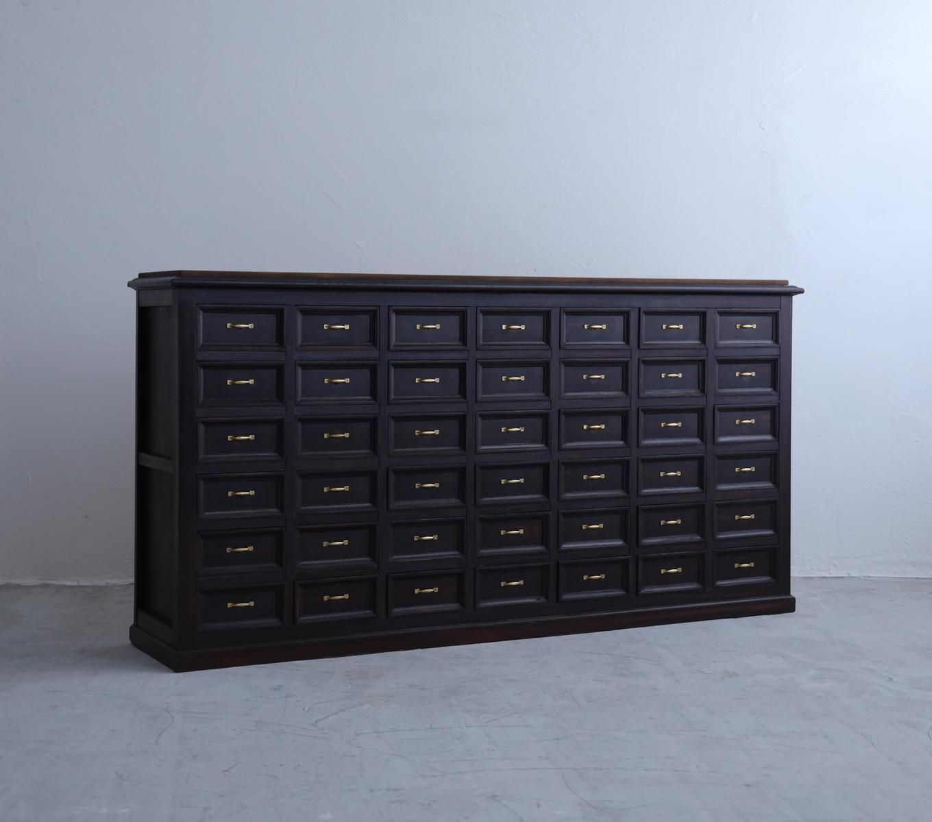 42杯の引き出しのあるアンティークの引き出し棚ずらりと並んだ引き出しに、威厳ある趣を感じます。