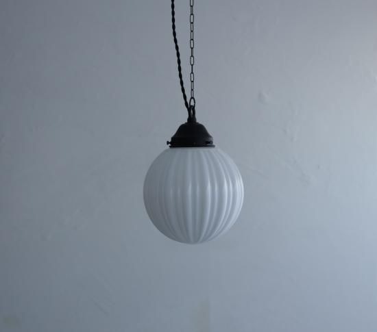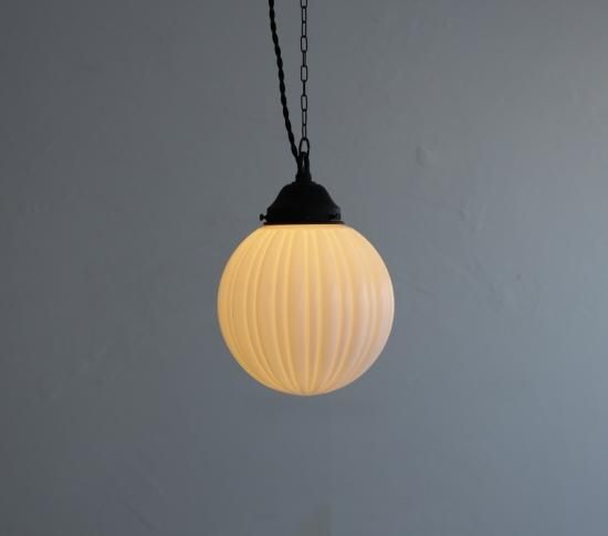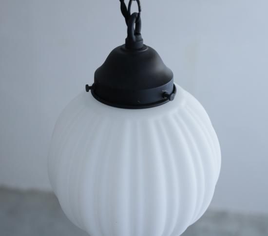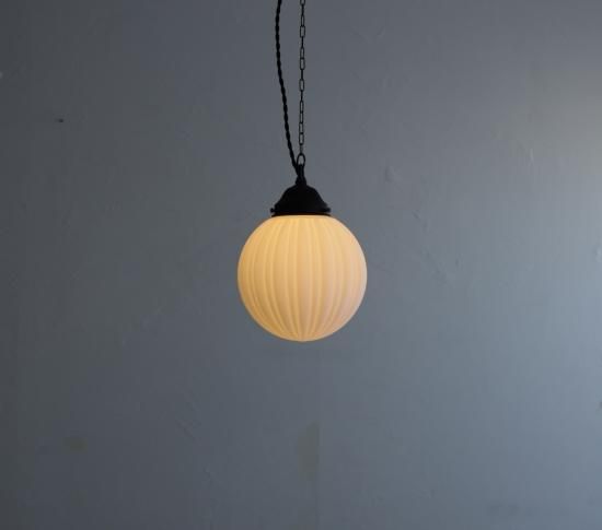 繊細な縦ラインの陽刻によってできる陰影のおかげで、夜点灯している時だけでなく、つけていない間でも眺めていたくなる。そんなアンティークランプです。