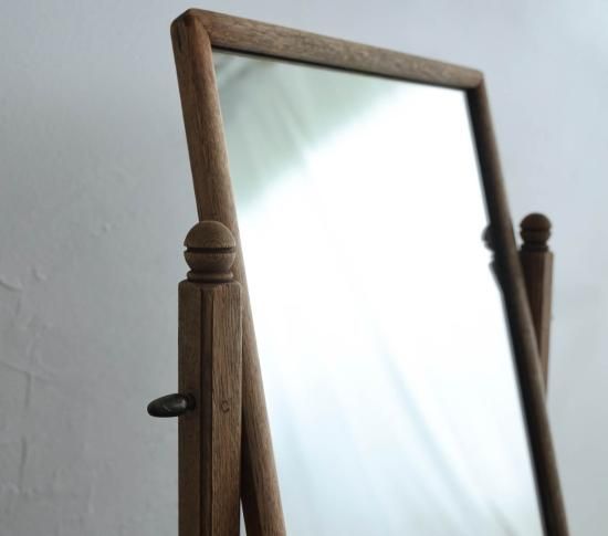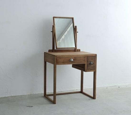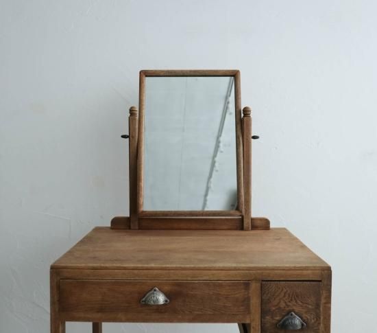 上質な楢材で構成されたシンプルな意匠の中にある、上品な佇まいは、ディテールの美しさによるもの。天板の縁取り、ミラーを支える支柱の面取り、などミニマルな意匠に確かな美意識が備わっています。