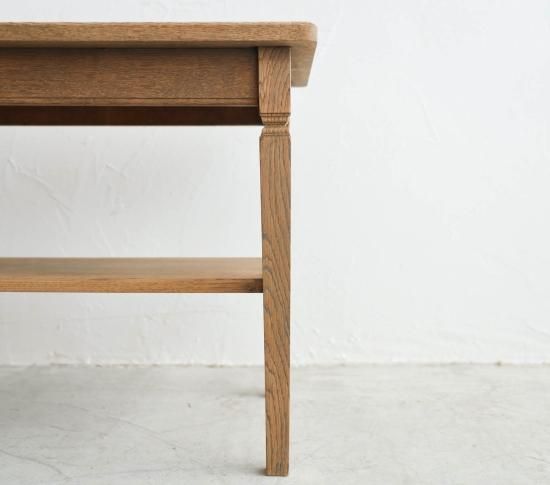 総楢材で構成されたサイドテーブル。 ずっしりと安定感がありながらも、要所に施された凹凸の意匠、そしてナチュラルなトーンの色味から、モダンな佇まいがあります。 空間に取り入れることで柔らかな印象を与えつつ、きりりと洗練されたものにしてくれます。 ソファサイドのテーブルとしてはもちろん、花台や展示台としてもおすすめです。