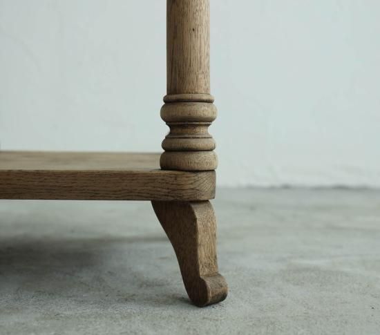 台部分の力強い直線と、ろくろの支柱・つま先立ちをしているような脚の繊細な曲線とが調和し、上品にまとめあげられたデザイン。