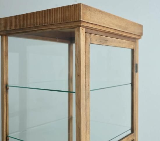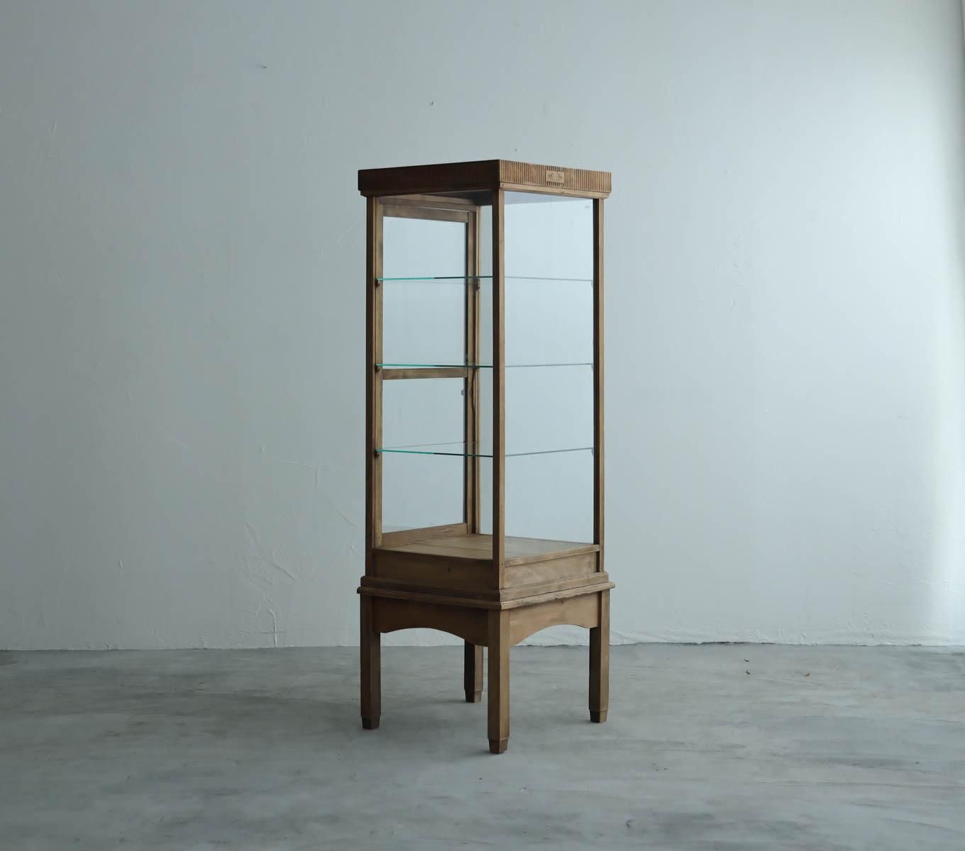 スラリと縦に長いエレガントな硝子ショーケース。