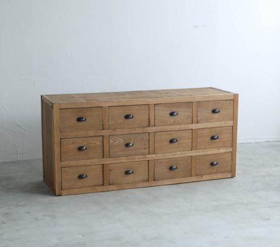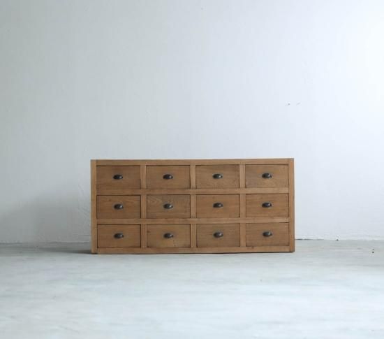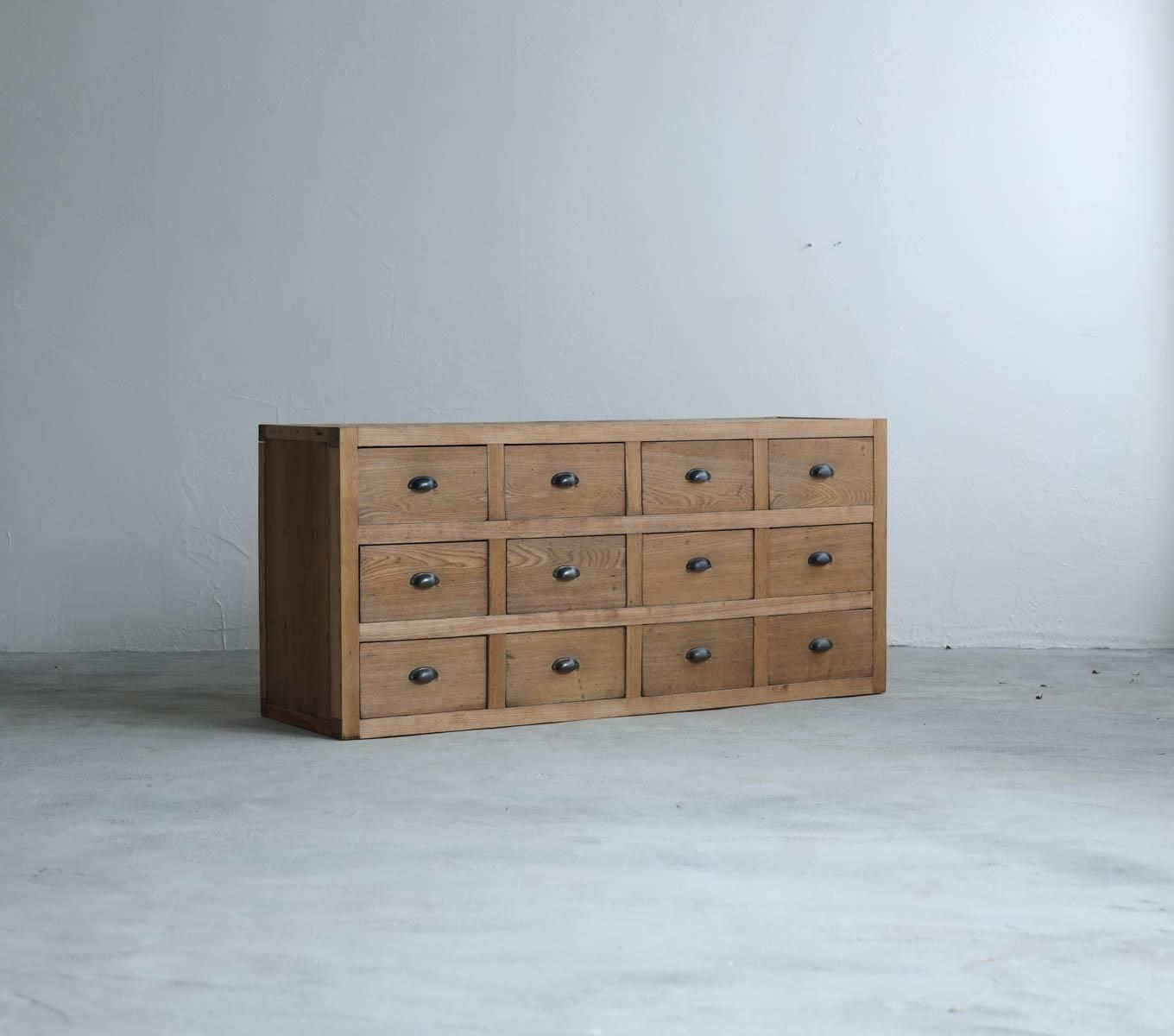 12杯の引き出しのあるアンティークの引き出しサイドボード。