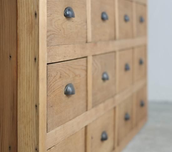 ずらりと並んだ引き出しは、栓材の軽やかな色味と相まってキュートな佇まい。