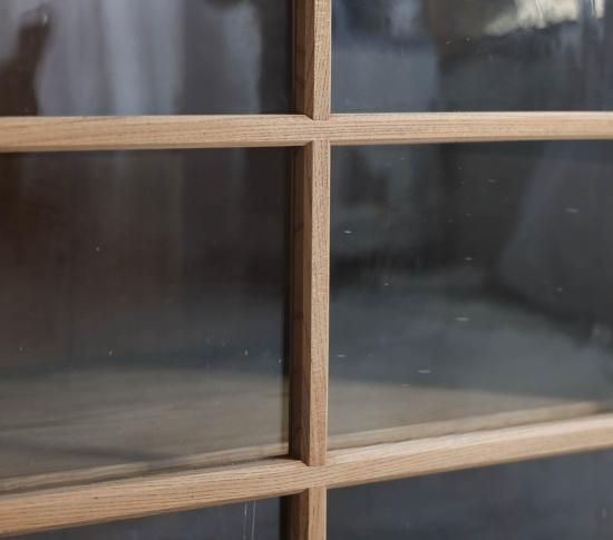 上質な欅材のエレガントな風合いと、格子のような直線的なラインが美しい作品です。
