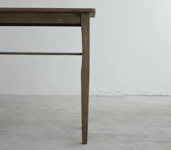薄い天板から伸びる脚は先端に向かい細くなるテーパー仕様。加えて根本付近から中央にかけて曲線が取り入れられ、ミニマルなデザインの中に繊細さを与える工夫が施されている。