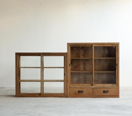 日本のアンティーク和家具の王道とも言える上下の棚です。