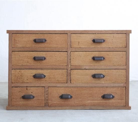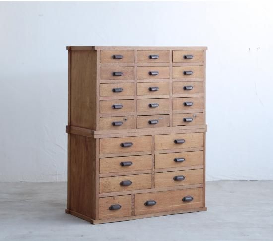 どこか懐かしく、新しさも感じさせる佇まいで、整然と並ぶ引き出しには、人の琴線に触れる美しさのエッセンスが宿っています。