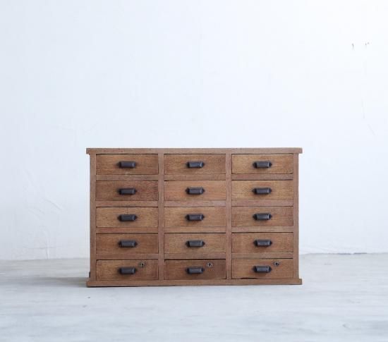 どこか懐かしく、新しさも感じさせる佇まいで、整然と並ぶ引き出しには、人の琴線に触れる美しさのエッセンスが宿っています。