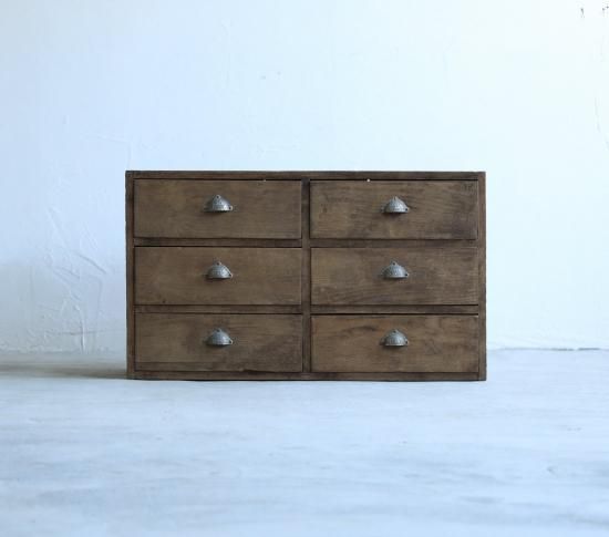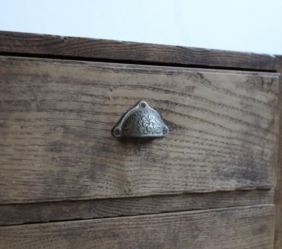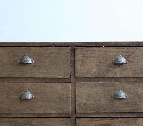 シンプルながら、細やかな意匠が光る栗材の引き出し棚。
