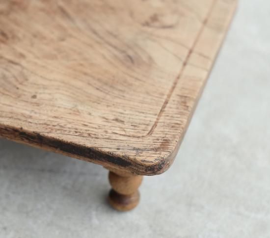 天板には、どこか素朴で懐かしい手触りが残り、小さなろくろ脚が、全体に軽やかな印象を添えています。