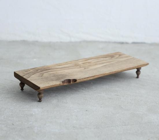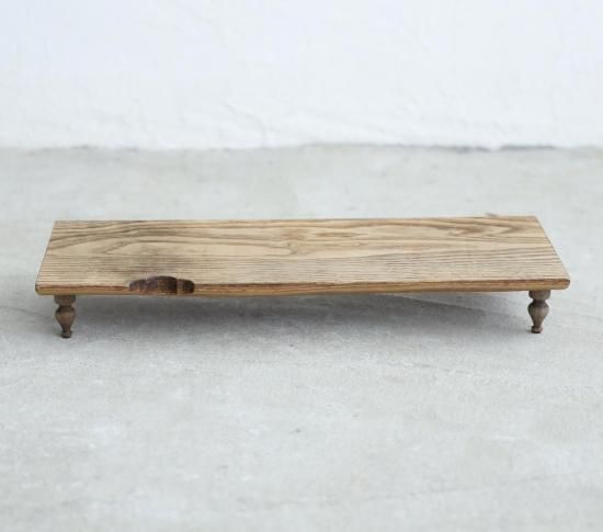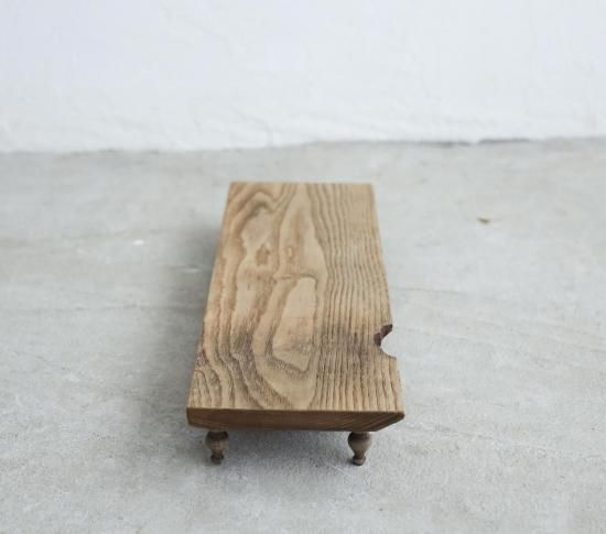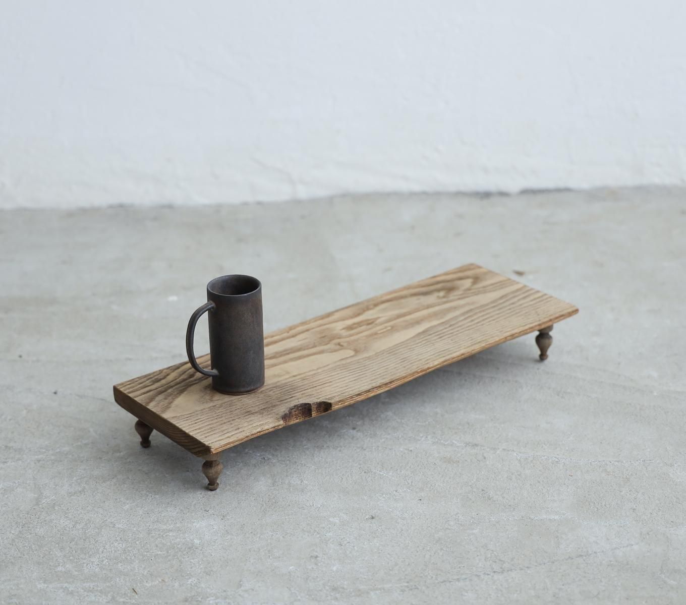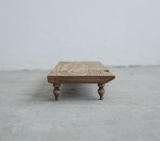 表情のある古材、ろくろ脚のやさしい曲線。そんな“素材の魅力”に、職人が気まぐれに火を灯し、小さな展示台として仕立てました。