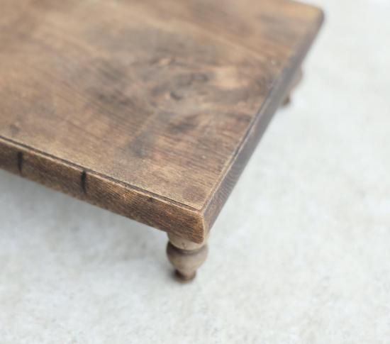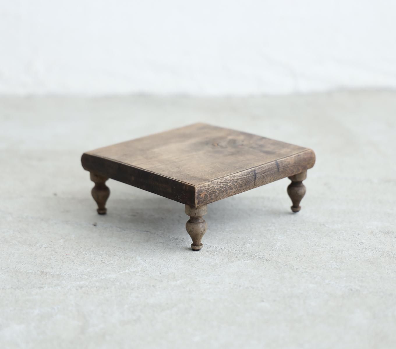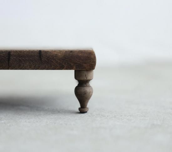 表情のある古材、ろくろ脚のやさしい曲線。そんな“素材の魅力”に、職人が気まぐれに火を灯し、小さな展示台として仕立てました。