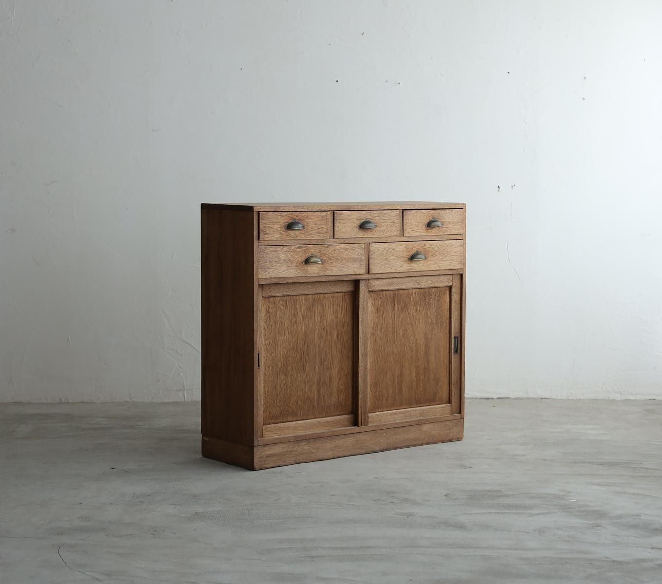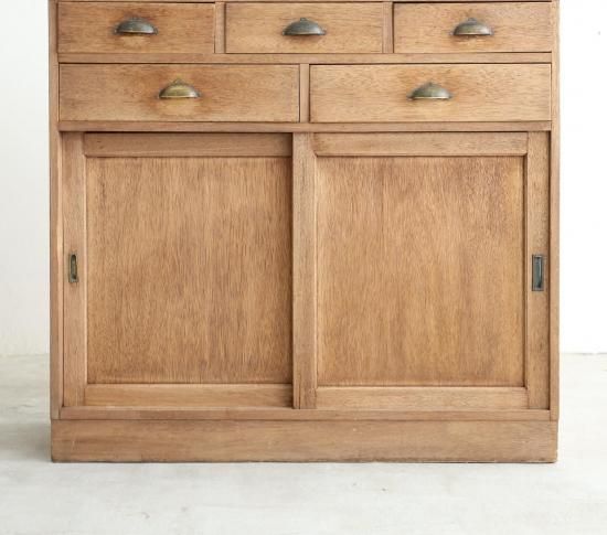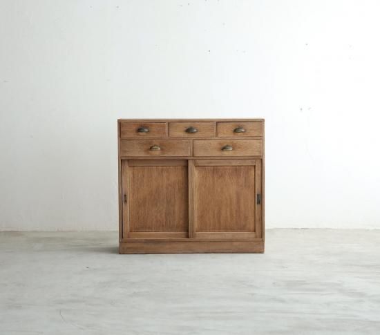 引き出し5杯、両開きの引き戸を備えた、大正期の収納棚です。