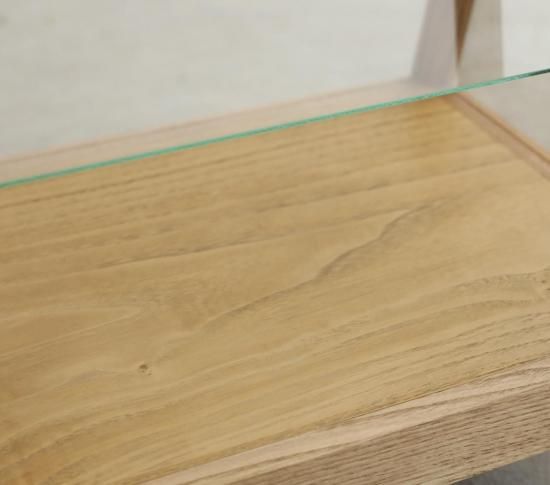 クリアなガラスが、木の深い表情をより引き立て、すっきりとした印象に仕上がっています。