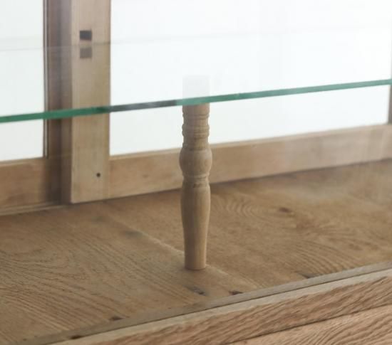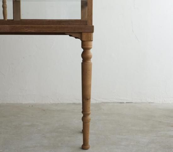 一方で、ガラス棚を支える中央の支柱には、当時のアンティークパーツをそのまま活かしています。