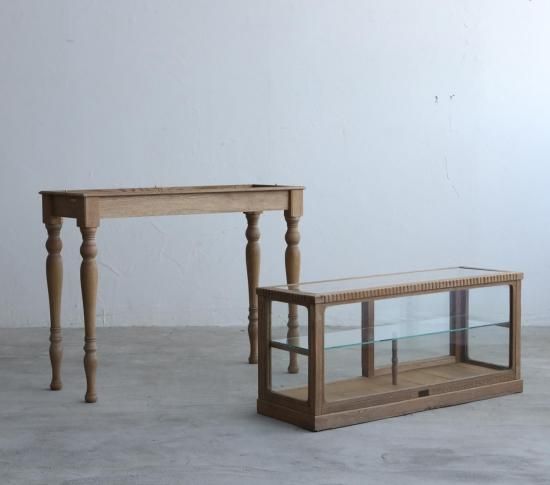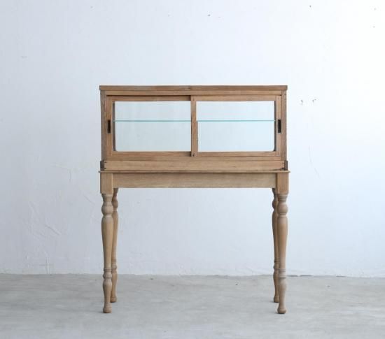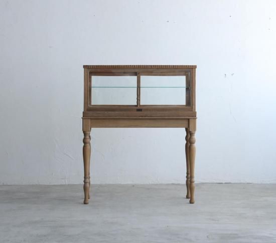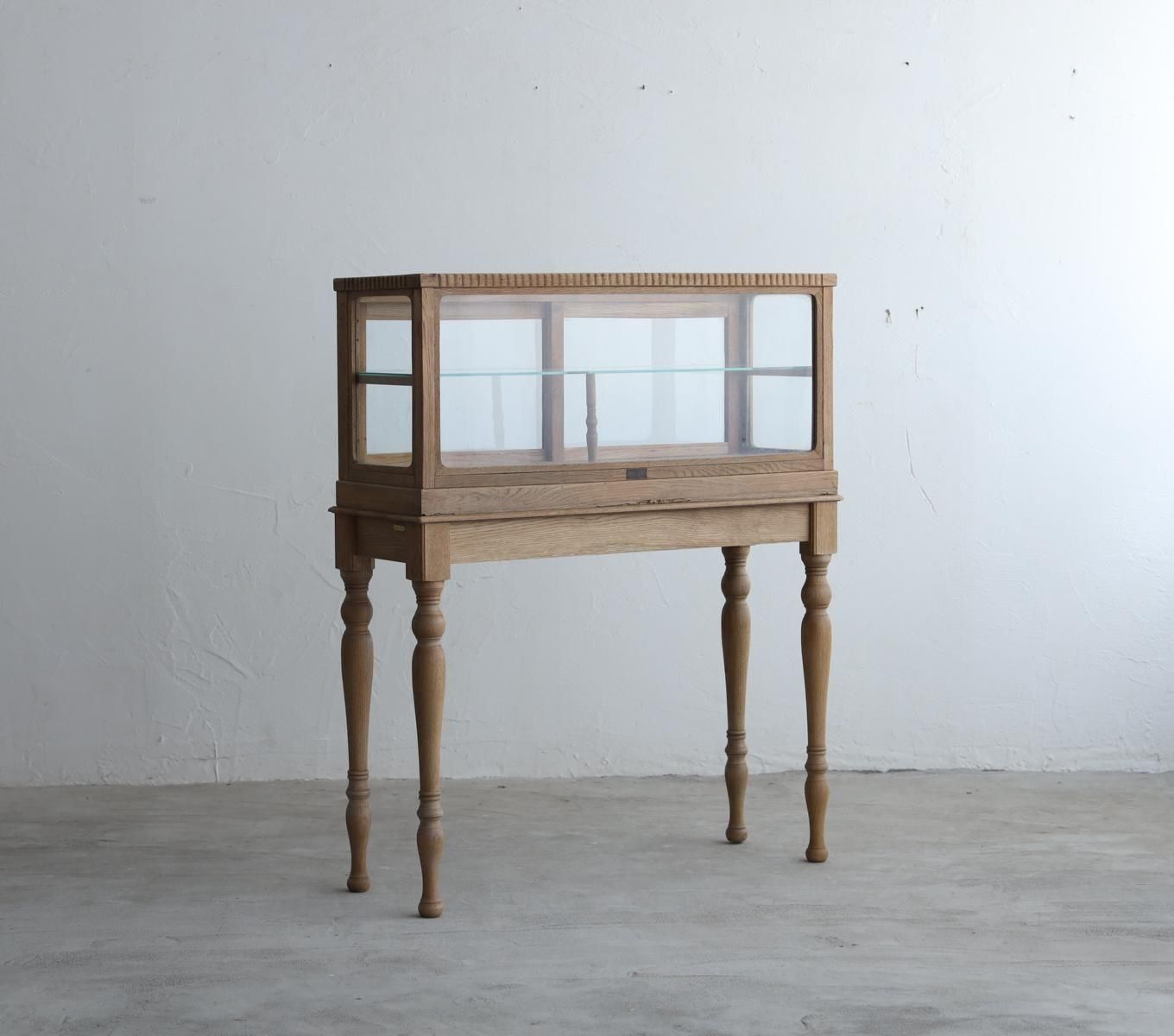 楢材のアンティークガラスショーケース(ろくろ脚)