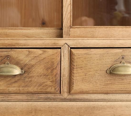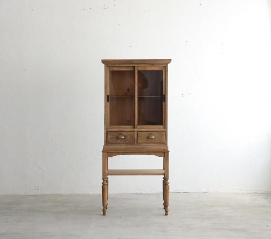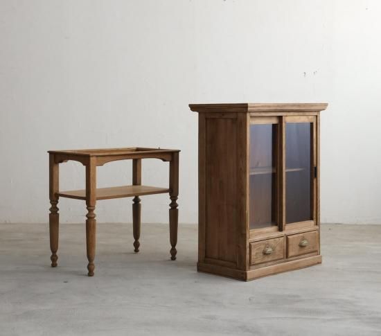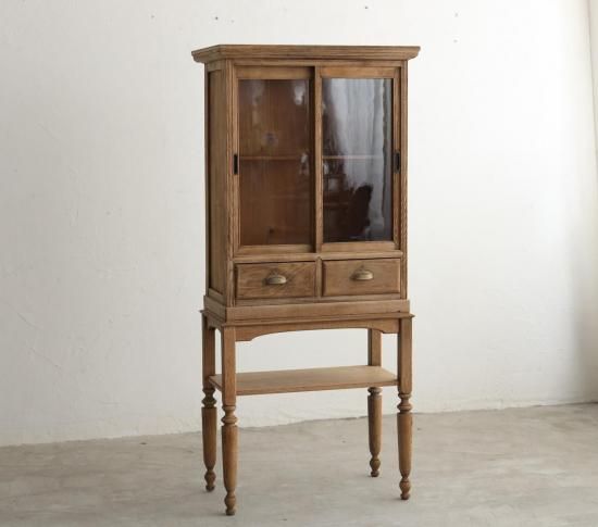 栗材と楢材で構成された、アンティーク家具をベースに製作したキャビネット。