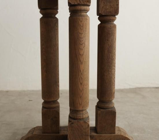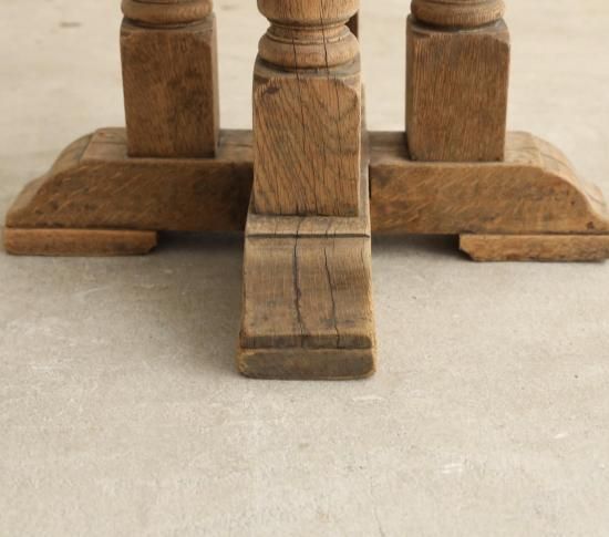 ろくろ挽きの支柱は一本一本に存在感があり、脚元の台座も安定感とデザイン性を兼ね備えた仕上がり。素材の良さと手仕事の丁寧さがしっかりと残る、アンティークならではの雰囲気が楽しめます。