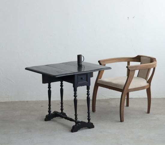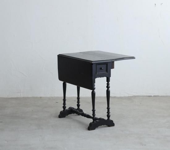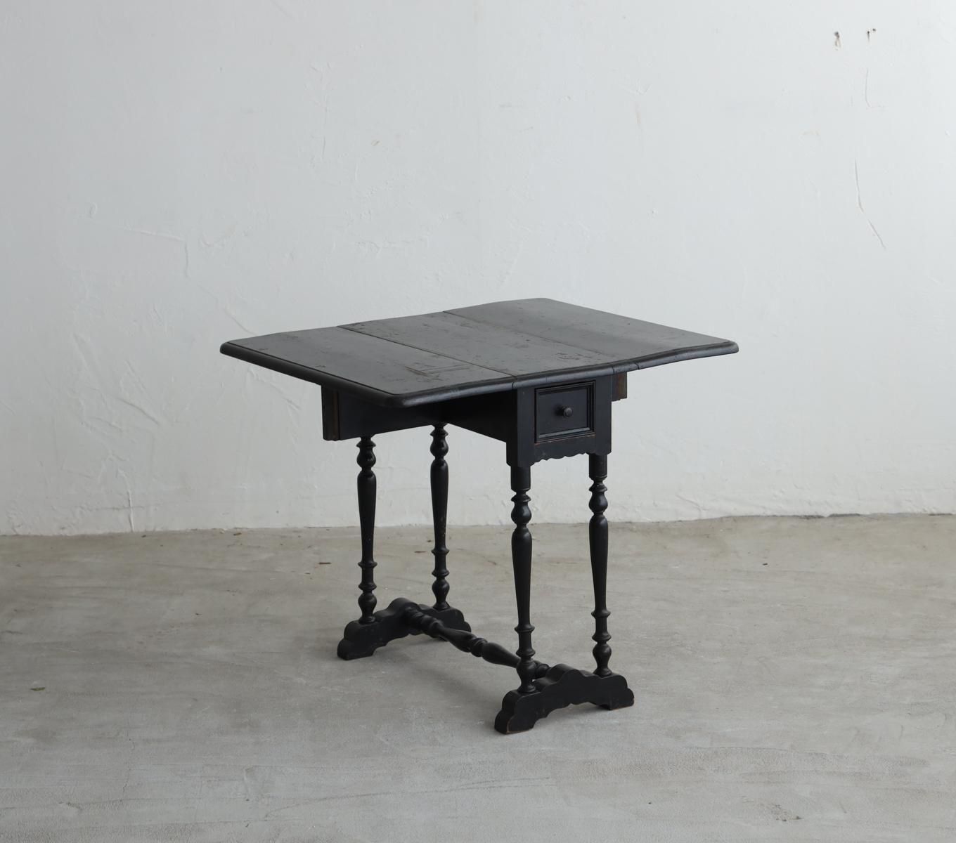 4本のろくろ脚は細身ながら強度が高く、中央には小さな引き出しを備え、当時の手仕事が随所に感じられる仕立てです。